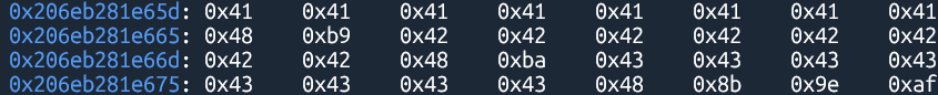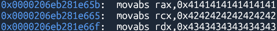 We can insert arbitrary 8-byte constant numbers into the middle of the function code. If we can redirect the instruction pointer to the exact location of the constant, those bytes are interpreted as instructions (shellcode).