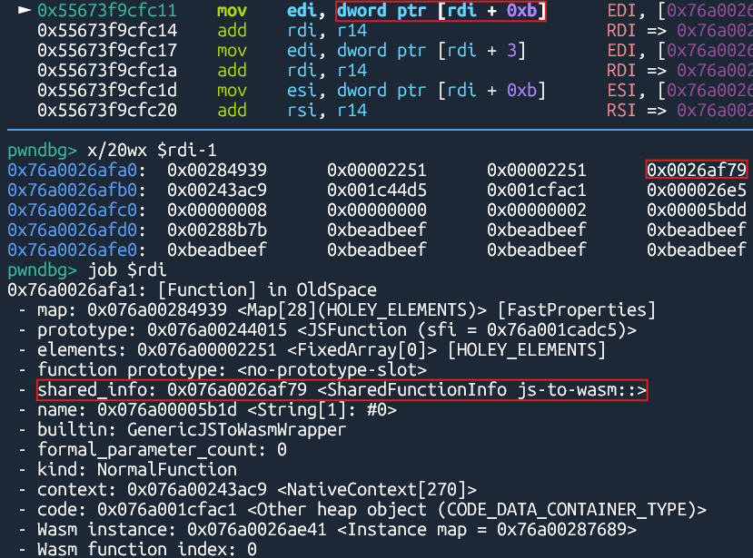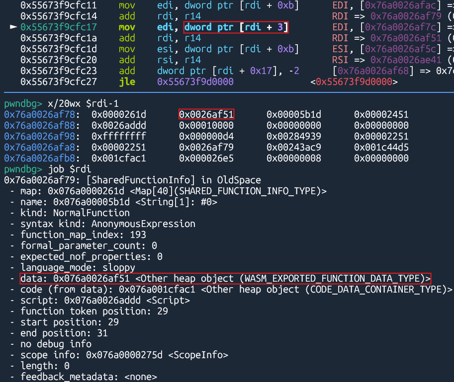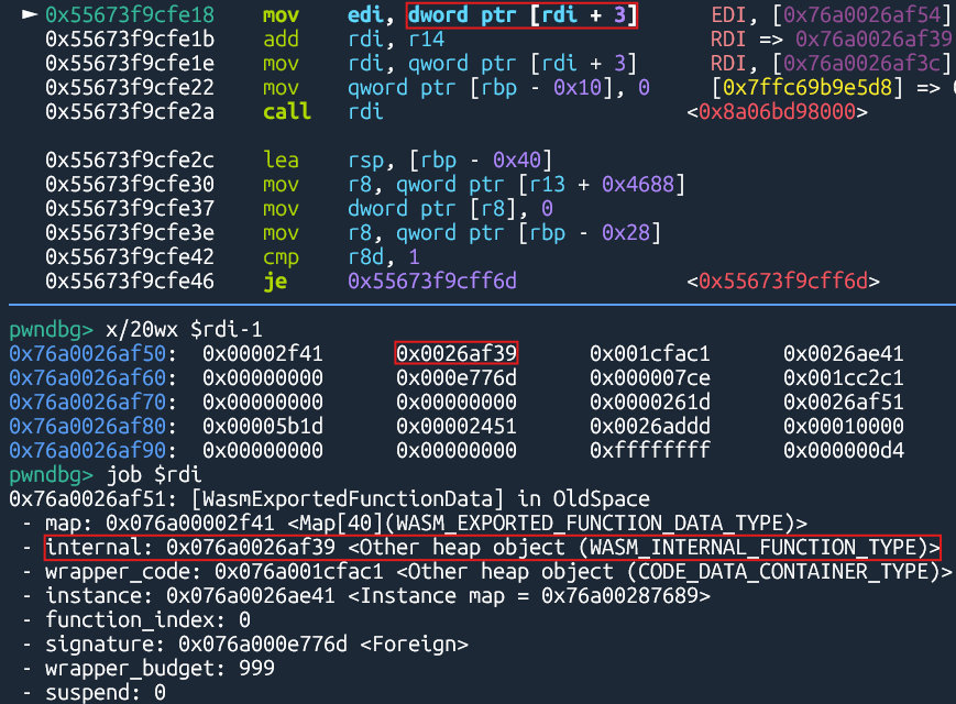 From there, it obtains the address of the WasmExportedFunctionData object.